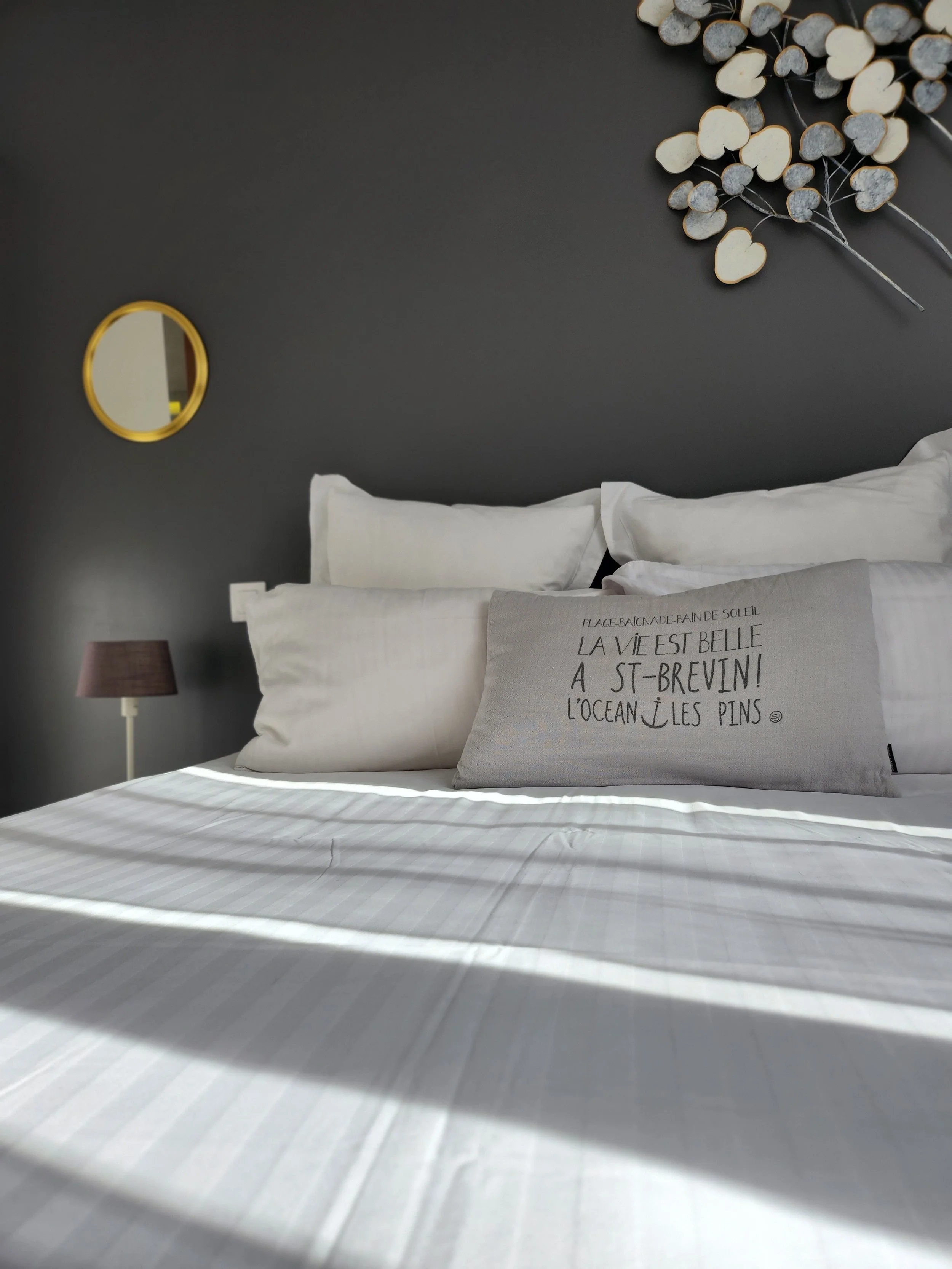 Profitez de cette chambre au calme aux tons modernes et romantiques. La lumière du jour pénètre dans la chambre par une large fenêtre exposée plein SudSon lit Queen Size est composé d’un matelas de haute qualité avec une fine couche en mémoire de forme. Deux formats et matières d’oreillers différents viennent compléter votre confort.